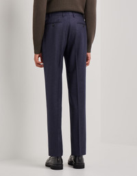 Pure wool flannel pants crafted to offer impeccable style and absolute comfort. The regular fit allows freedom of movement without sacrificing the elegance of clean lines. An essential garment for those who appreciate quality materials and want a versatile look that can adapt to any occasion with understated sophistication. FABRICS AND CRAFTSMANSHIP - Pleatless pants - American-style pockets and two welted back pockets - Hem 19.5 cm - 100% wool - Made in Italy CARE Do not wash with water Do not bleach Normal steam or dry iron on low (150°) Dry clean with perchlorethylene Do not tumble dry FIT Regular fit The model is wearing a size 48 The model measures: Height: 186 cm (73.2 in) Chest: 81 cm (31.9 in) Waist: 70 cm (27.6 in) Hips: 82 cm (32.3 in)