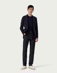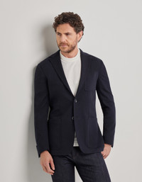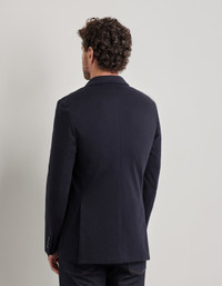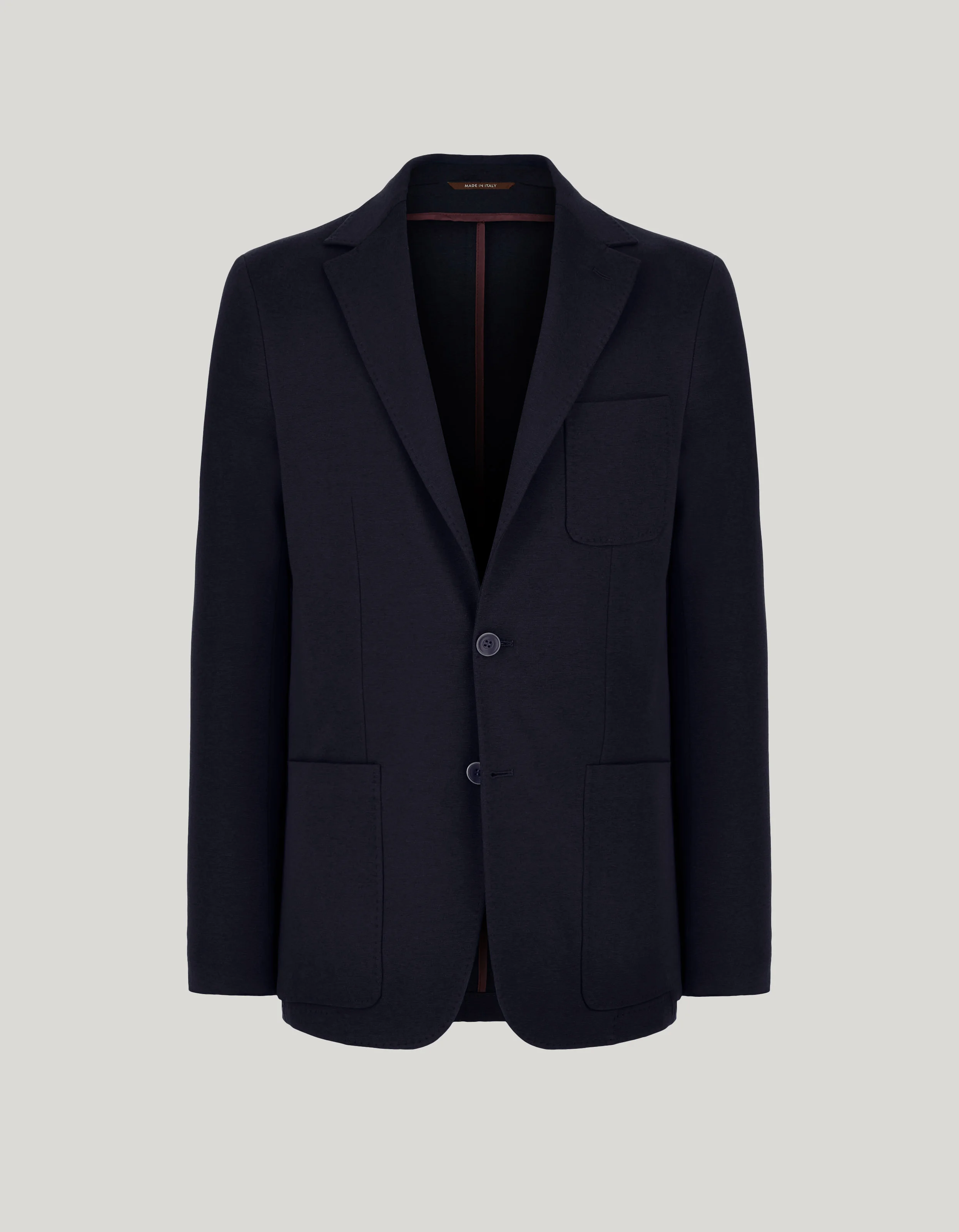 Single-breasted blazer in comfortable cotton jersey; features regular pockets and a small patch pocket. A very versatile piece, it effortlessly takes you from work to play. A refined marriage between aesthetics and functionality sums up its design. FABRICS AND CRAFTSMANSHIP - Single-breasted two-button blazer - Regular pockets and a small patch pocket - Blazer length: 74 cm in size 50 - 58% cotton 24% polyamide 18% elastane - Made in Italy CARE Do not wash with water Do not bleach Normal steam or dry iron on low (110°) Dry clean with perchlorethylene Do not tumble dry FIT The model is wearing a size 48 The model measures: Height: 188cm Chest: 95cm Waist: 79cm Hips: 94cm