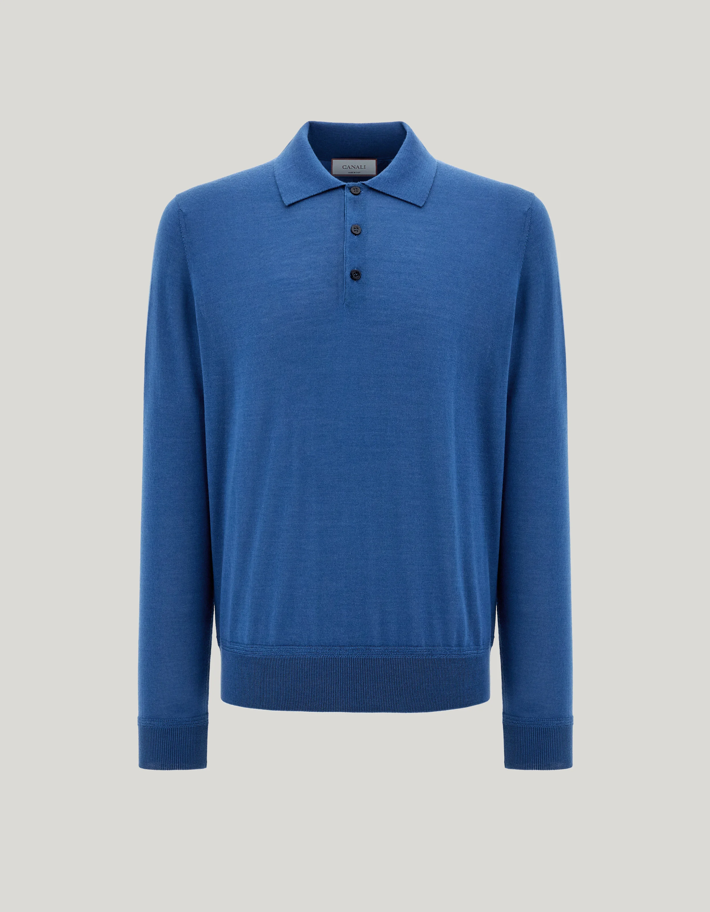 Long sleeved polo shirt in fine wool-silk-cashmere blend, designed for the man who wants to combine versatility and sophistication in every occasion. The plain knit workmanship, enriched by structured details on the bottom and sleeves, enhances the quality of the materials and gives a refined softness. An essential piece for the contemporary wardrobe, capable of adding a note of understated elegance to both formal and more casual outfits. FABRICS AND CRAFTSMANSHIP - Long sleeved button-down polo shirt - Ribbed neckline, hem and cuffs - Plain knit - 18 gauge - 70% wool 20% silk 10% cashmere - Made in Italy CARE Hand wash max 40° Do not bleach Normal steam or dry iron on low (110°) Gentle dry clean with perchlorethylene Dry flat FIT The model is wearing a size 48 The model measures: Height: 186 cm (73.2 in) Chest: 81 cm (31.9 in) Waist: 70 cm (27.6 in) Hips: 82 cm (32.3 in)