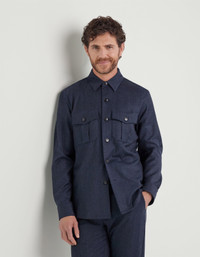 Ideal for the modern man, this blue shirt jacket in pure Impeccabile wool - a high-quality fabric whose resistance to wrinkles ensures a consistently flawless appearance - combines Italian tailoring craftsmanship and dynamic comfort. With six buttons and a relaxed fit that enhances the silhouette, along with practical pockets. Its understated elegance and perfect versatility make it ideal for both formal occasions and more casual moments, always promising impeccable style and uncompromising quality. FABRICS AND CRAFTSMANSHIP - Shirt Jacket - Front with 6 buttons - Hand pockets along the side seam - Chest pockets with gusset, flap and button - Jacket length 75 cm in size 50 - 100% wool - Made in Italy CARE Do not wash with water Do not bleach Normal steam or dry iron on low (110°) Gentle dry clean with perchlorethylene Do not tumble dry FIT Relaxed fit Shirt jacket featuring a more relaxed fit around the shoulders, waist and length