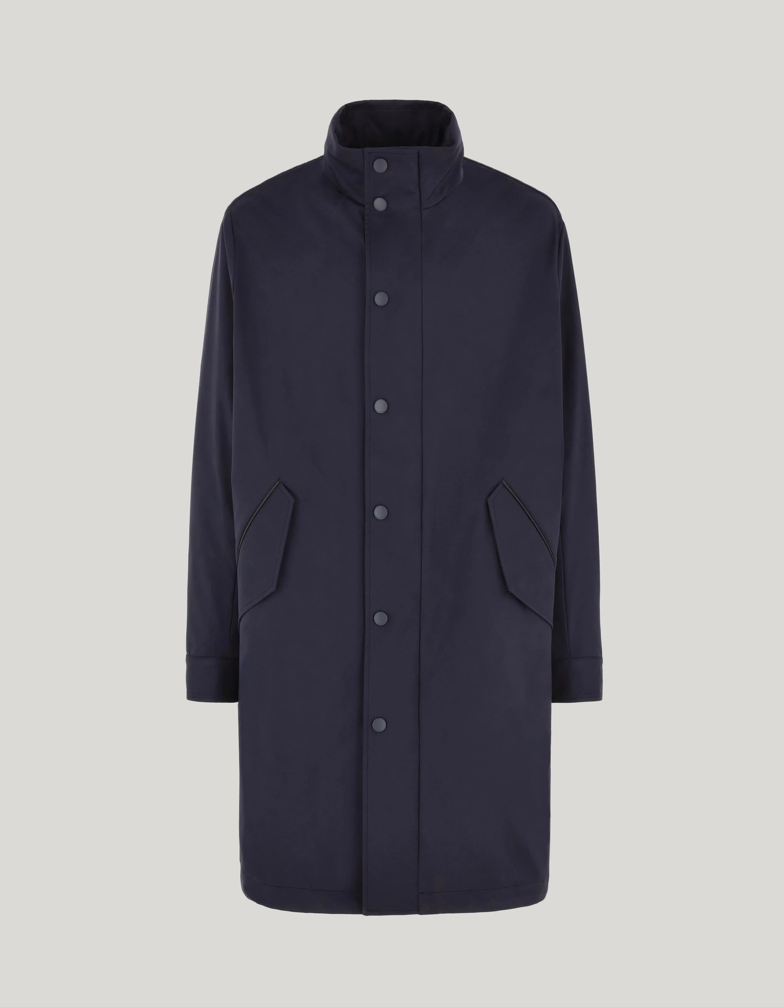 Technical fabric parka designed for the man who faces all weather conditions with elegance and practicality. The clean-cut central closure and removable hood add functionality, while details such as the leather zipper puller speak to its craftsmanship. A cross-over piece, perfect for stylishly transitioning from one engagement to another even on uncertain days. FABRICS AND CRAFTSMANSHIP - Stand-up collar parka with set-in sleeves - Removable hood - Central fastening with matching snap button and concealed double-slider zipper and leather zipper puller - Hand pockets with flaps - Cuffs with snap button - Suede details - Genuine leather tag - Unlined piece - Internal hem adjustment with coulisse - Patch pockets - 100% Polyester with membrane - Rain & Wind - Made in Italy CARE Hand wash max 40° Do not bleach Normal steam or dry iron on low (110°) Do not dry clean Do not tumble dry FIT The model is wearing a size 48 The model measures: Height: 189 cm (74.4 in) Chest: 98 cm (38.6 in) Waist: 82 cm (32.3 in) Hips: 97 cm (38.2 in)