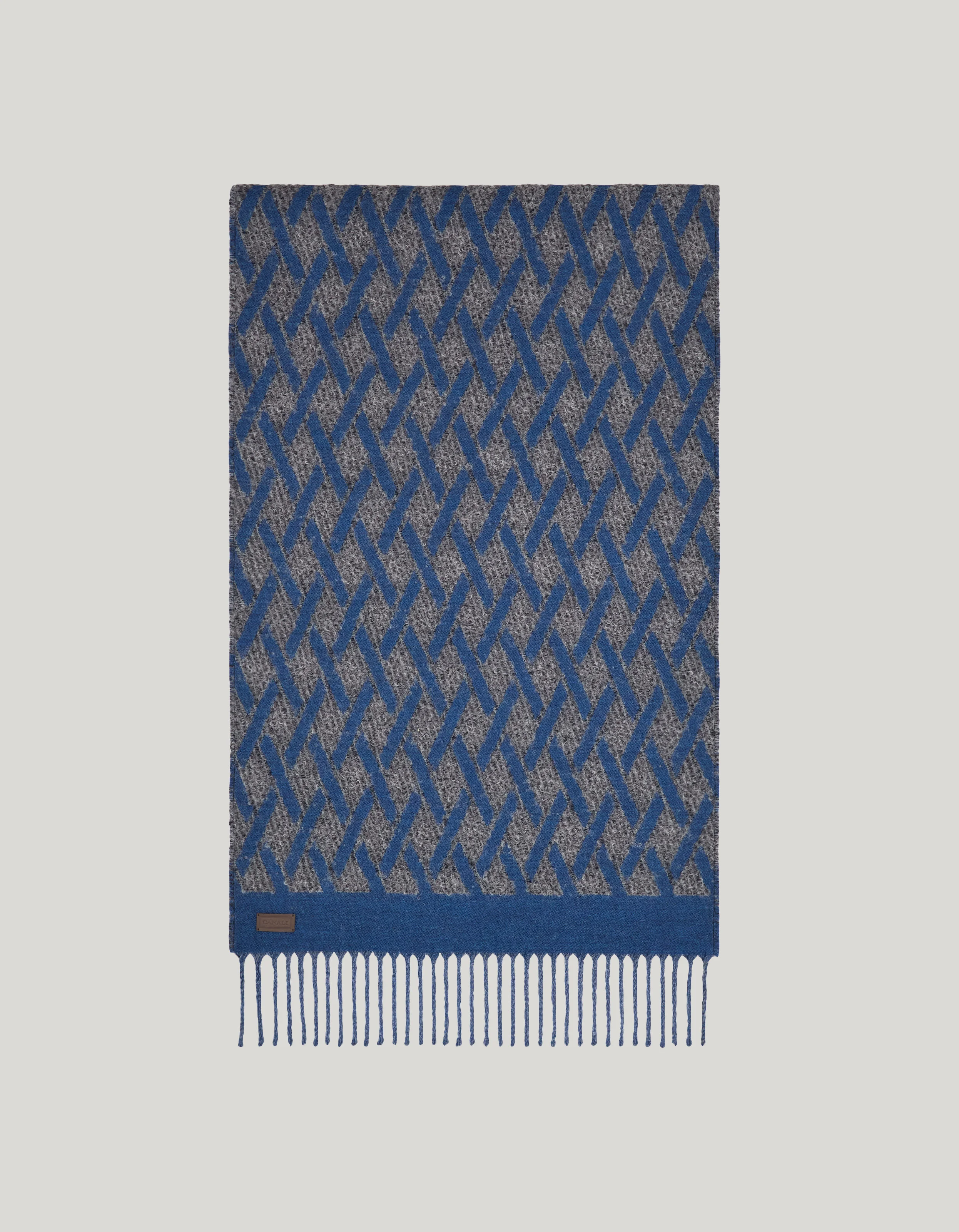 BOUCLÉ SCARF, GRAY/BLUE LOZENGE MOTIF