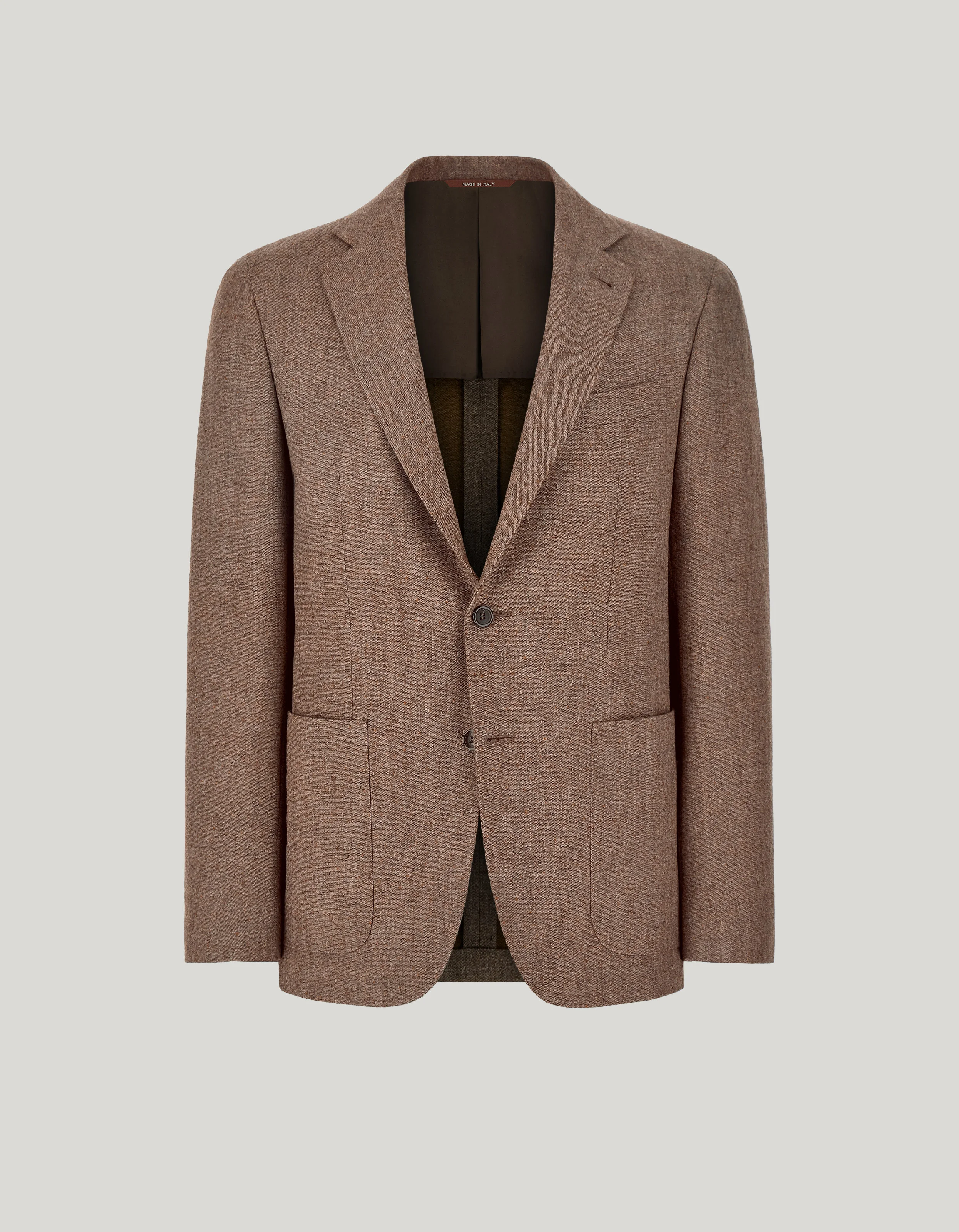 With refined design and sublime comfort, the Kei jacket in pure wool is a masterpiece of Italian tailoring craftsmanship, embellished with a Donegal pattern that enhances its chic style. Soft and lightened, it charms with a modern fit that enhances the silhouette with an elegant touch. This garment is perfect for those seeking contemporary sophistication while maintaining a versatility that is well suited to a variety of occasions. FABRICS AND CRAFTSMANSHIP - Unlined single-breasted two-button jacket - Patch pockets and slit breast pocket - Set-in shirt sleeves - Inside pockets with fabric piping and lined triangular pocket square - Jacket length 75 cm in size 50 - 100% wool - Made in Italy CARE Do not wash with water Do not bleach Normal steam or dry iron on low (150°) Dry clean with perchlorethylene Do not tumble dry FIT Modern Fit - drop 7 The jacket is soft and de-constructed, with a contemporary fit on the shoulders, chest, and hips, while the waist is more enveloping, defining a slimmer silhouette. Set-in sleeves and ultra-light 1 mm high shoulder pad. The model is wearing a size 48 The model measures: Height: 186 cm (73.2 in) Chest: 81 cm (31.9 in) Waist: 70 cm (27.6 in) Hips: 82 cm (32.3 in)