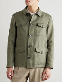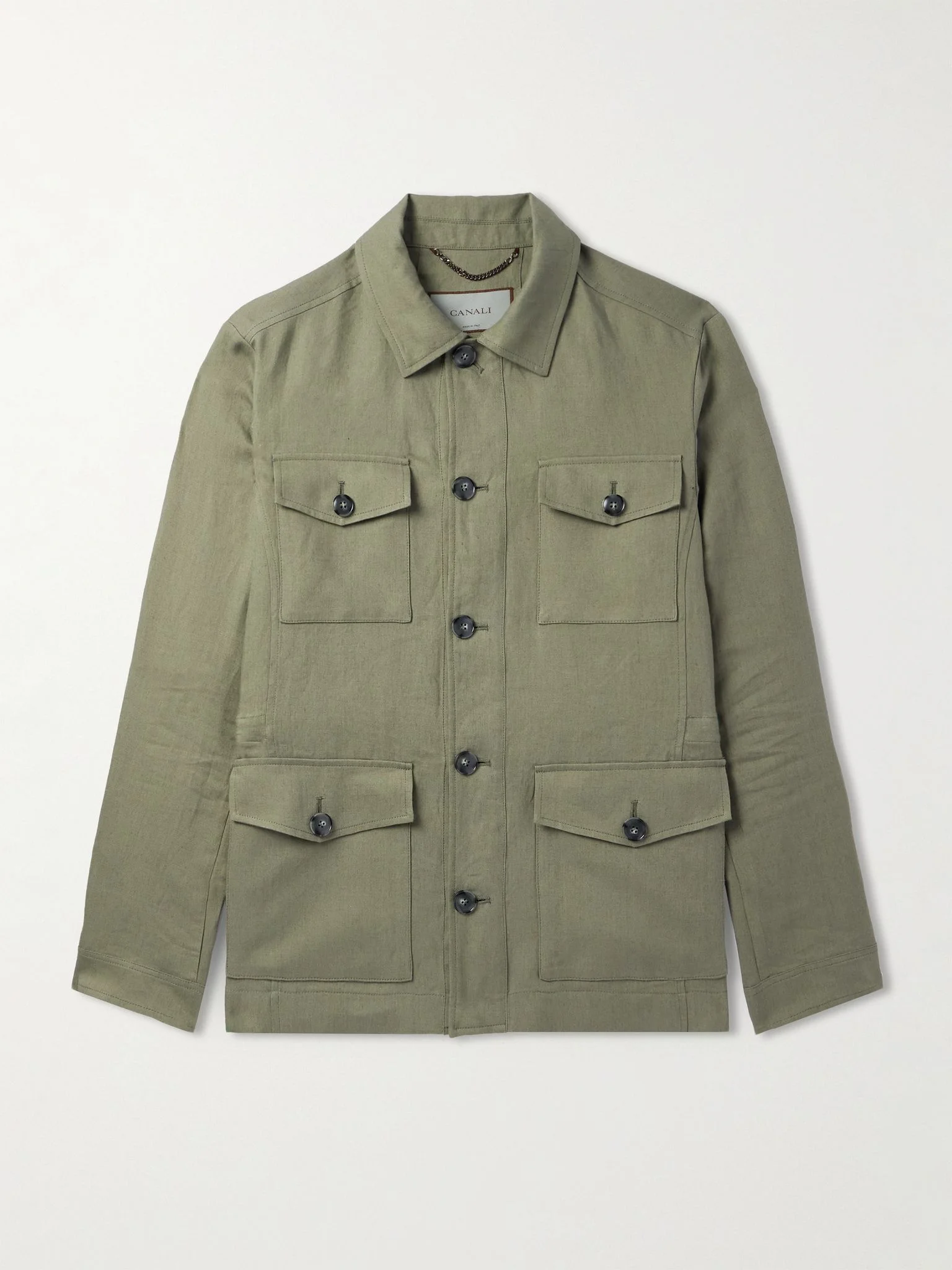 Italian label Canali has been family-run for three generations, so you can expect quality from all aspects. This jacket is made from breathable linen-canvas and has button-fastening pockets and a suede lining along the inner placket. Size & Fit - Fits true to size. Take your normal size - Take the next size up if you wish to achieve a more comfortable fit - Designed for a regular fit - Internal drawcord at the waist - Mid-weight, non-stretchy fabric - Model is shown wearing an IT 48 - Model measures: chest 38"/ 96cm, height 6'2"/ 188cm Details & Care - Army-green linen-canvas - Button fastenings - 100% linen; trim: 100% suede (Goat); buttons: 100% horn (Buffalo) - Dry clean