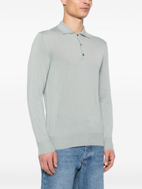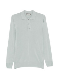 button-up ribbed-knit polo shirt Highlights - Blue - Polo collar - Button fastening - Long sleeves - Fine knit Made in Italy Composition Wool 100% Washing instructions Hand Wash