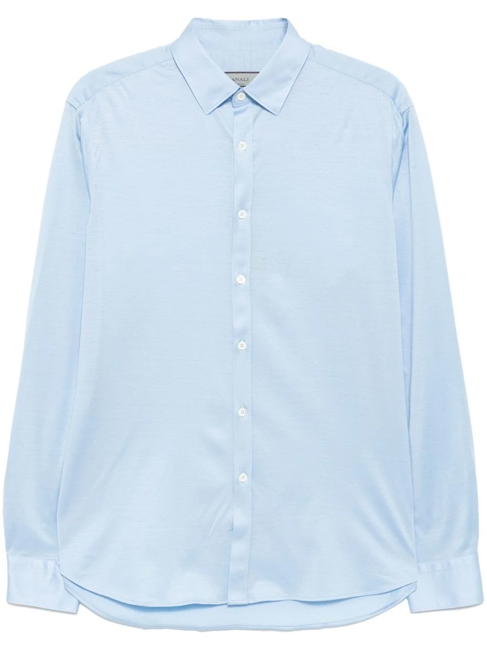 button-up shirt Highlights - Sky blue - Front button fastening - Long sleeves - Buttoned cuffs - Curved hem Made in Italy Composition Cotton 100% SIZE & FIT FittingInformation Designed for a slim fit, offering a comfortable fit that sits just away from the body Made from a lightweight non-stretch fabric, this piece offers minimal elasticity when worn