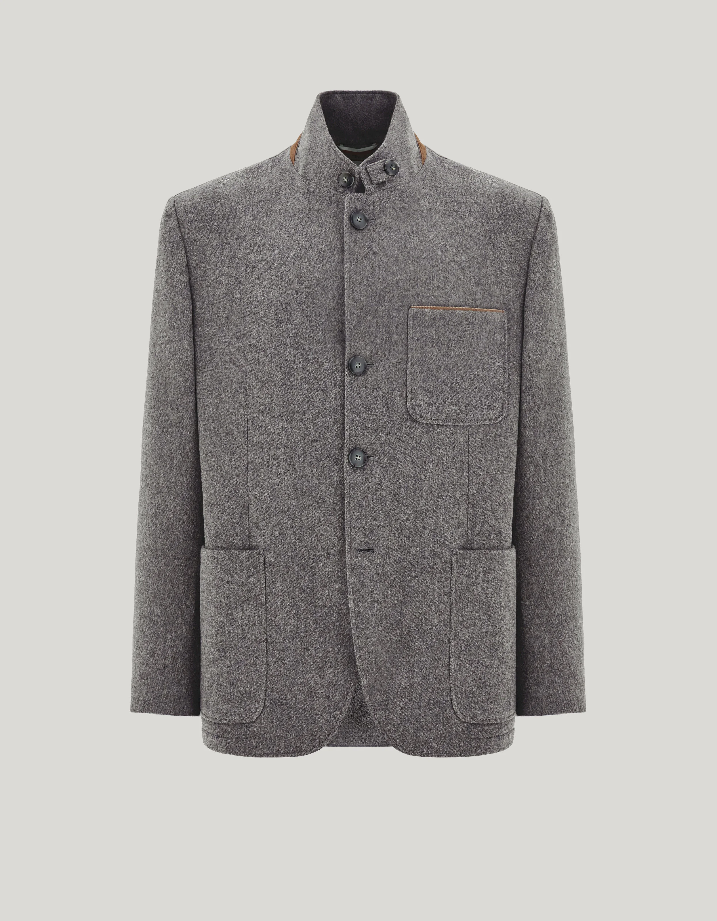 Canali Bruma unlined single-breasted jacket in pure cashmere, embellished with refined handcrafted suede details and dual-purpose embroidery on the collar. A piece that combines elegance, comfort, and craftsmanship, designed for the man who wants to stand out with style on every occasion. FABRICS AND CRAFTSMANSHIP - Unlined jacket, single-breasted, 3+1 buttons - Patch pockets, patch pocket with suede detail - Sleeve bottom with fabric toggle - Suede collar yoke with embroidery and fabric trim - Jacket length 76 cm in size 50 - 100% cashmere - Made in Italy CARE Do not wash with water Do not bleach Normal steam or dry iron on low (150°) Dry clean with perchlorethylene Do not tumble dry FIT The model is wearing a size 50 The model measures: Height: 185 cm (72.8 in) Chest: 100 cm (39.4 in) Waist: 79 cm (31.1 in) Hips: 95 cm (37.4 in)