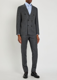 Info & Care Canali wool;suit Blazer: subtle check, peaked lapels, faux button-fastening cuffs, designer plaque at cuff, chest slit pocket, darts through waist, front patch pockets, two back vent, two internal button-fastening slip pockets,;button-breasted button fastenings at front Trousers: subtle check, belt loops, pressed crease through legs, two side slant pockets, two button-fastening back slit pockets, unfinished cuffs to allow for leg alterations, partially concealed zip and button fastenings at front 100% wool Dry clean; Size & Fit Length shoulder to hem: 28 inches/ 71cm Inside leg length: 36 inches/ 91.5cm Midweight Fitted;blazer Slim tapered-leg cut trousers Model is 6'2"/ 188cm, chest size 38 inches and wears a size IT48 Please note, cuffs are unfinished to allow for leg alterations