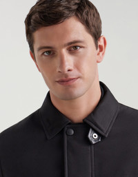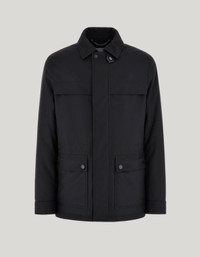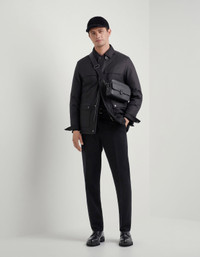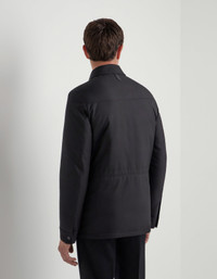 Field jacket with functional elegance, made of micro-structured technical fabric with membrane and genuine down padding. Leather details and double pocket entry enhance its practicality and character. Designed to offer protection and comfort on rainy or windy days, it is the ideal choice for tackling the city in style. FABRICS AND CRAFTSMANSHIP - Set-in sleeve field jacket - Concealed central fastening with snap buttons and double-slider zipper with leather pull - Patch pockets with concealed double entry - Cuffs with snap buttons - Nappa leather details - Genuine leather tag - Genuine down padding - Lined piece - Vertical pocket with zipper and patch pockets - Inner piece adjustment with drawstring - 100% Polyester with membrane - Rain & Wind - Made in Italy CARE Do not wash with water Do not bleach Do not iron Gentle dry clean with perchlorethylene Do not tumble dry FIT The model is wearing a size 48 The model measures: Height: 189 cm (74.4 in) Chest: 98 cm (38.6 in) Waist: 82 cm (32.3 in) Hips: 97 cm (38.2 in)