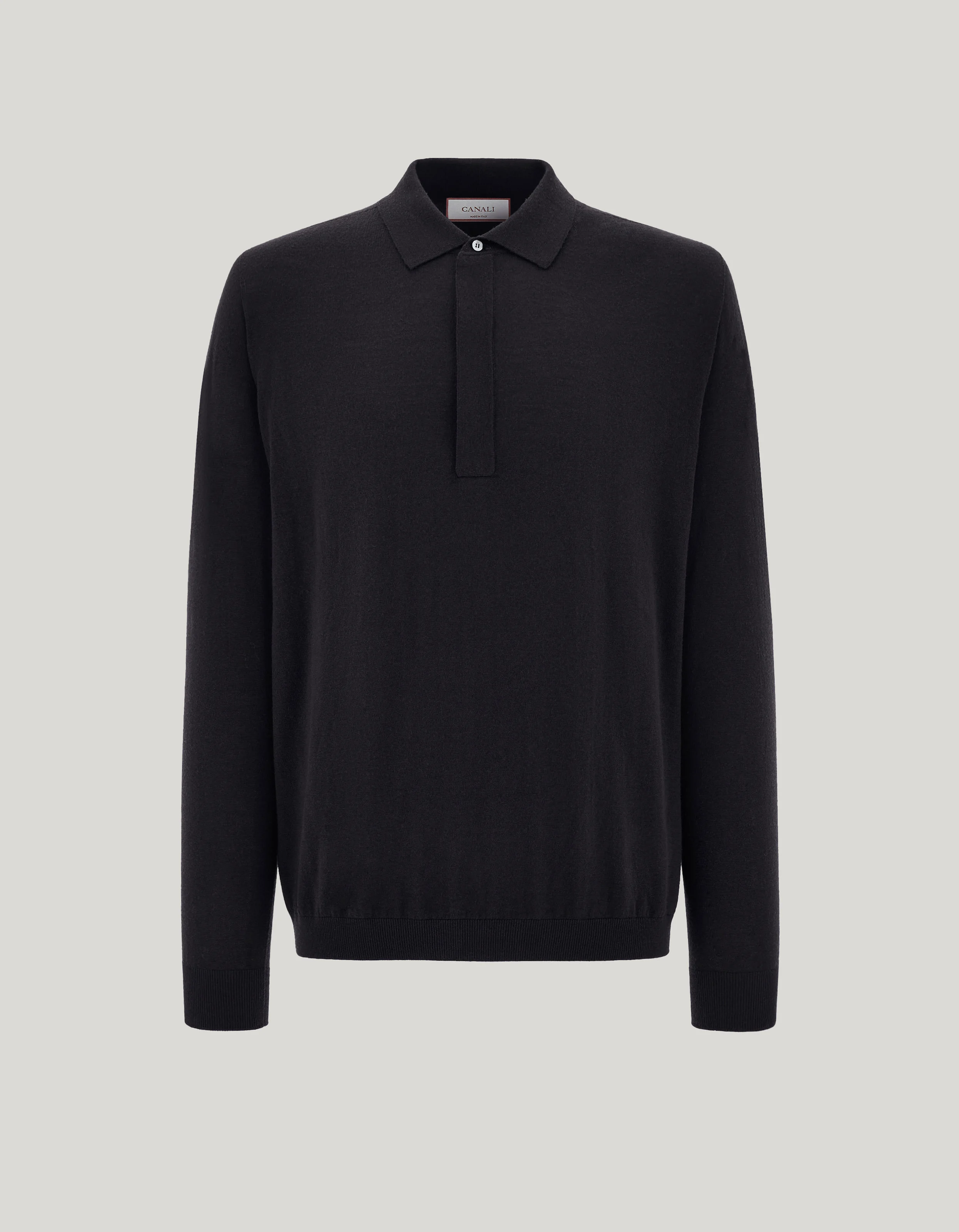 CANALI NUVOLA BLACK SEAMLESS EXTRA-FINE MERINO WOOL POLO SHIRT