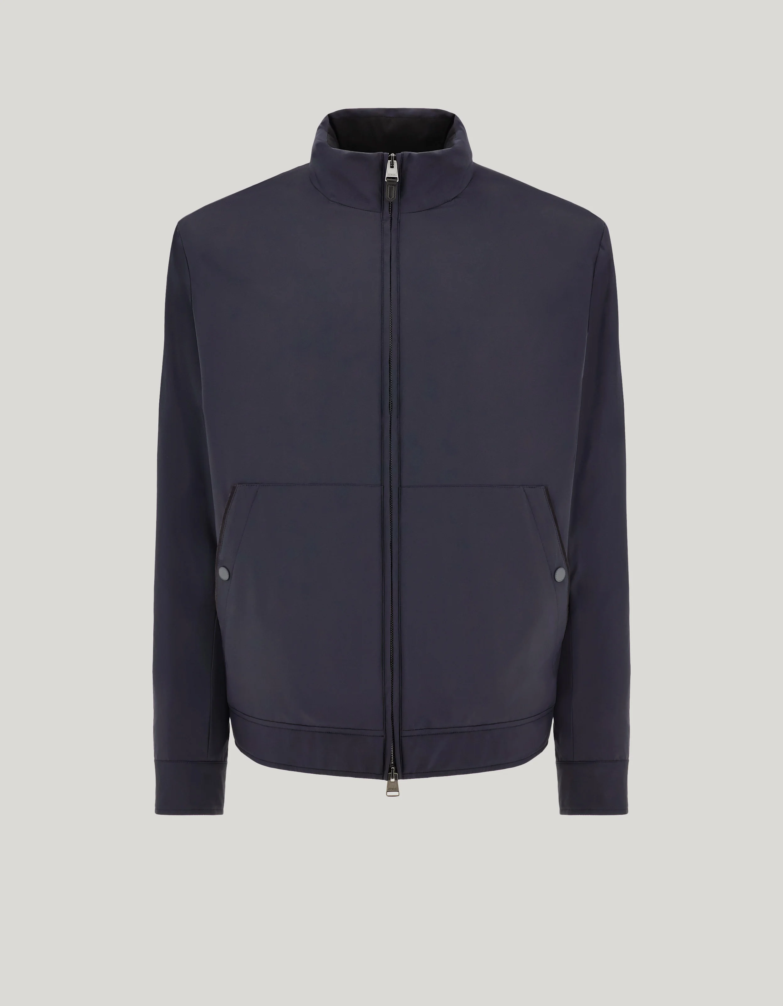 A stylish jacket made of an innovative technical fabric resistant to wind and rain. The removable hood and adjustment at the hem make it a perfect piece for any occasion, accompanying movements with discretion. Careful design and Italian craftsmanship transform practicality into an expression of personal style, ideal for the man who seeks a dynamic and refined look. FABRICS AND CRAFTSMANSHIP - Stand-up collar jacket with set-in sleeves - Removable hood - Technical fabric details - Central fastening with double-slider zipper and leather zipper puller - Patch hand pockets with snap button - Cuffs with snap button - Suede details - Genuine leather tag - Lined piece - Patch pockets - Hem adjustment with coulisse - 100% Polyester with membrane - Rain & Wind - Made in Italy CARE Do not wash with water Do not bleach Do not iron Gentle dry clean with perchlorethylene Do not tumble dry FIT The model is wearing a size 48 The model measures: Height: 189 cm (74.4 in) Chest: 98 cm (38.6 in) Waist: 82 cm (32.3 in) Hips: 97 cm (38.2 in)