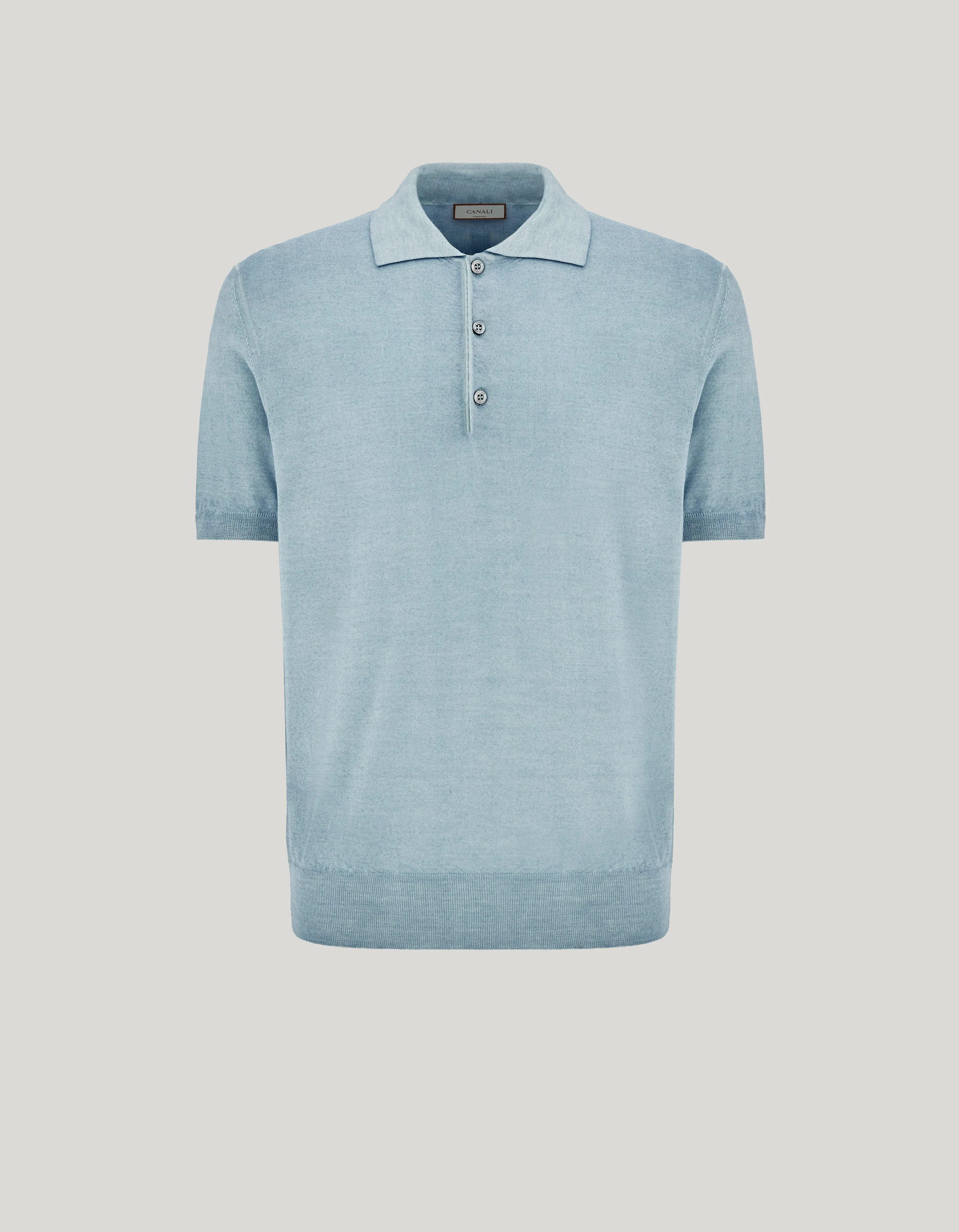 Short sleeved polo shirt in fine wool and silk, designed for the man who wants to combine polished style with everyday practicality. The plain knit finish and dye treatment enhance the subtle elegance of the design, while the softness of the materials ensures superior comfort. A versatile and refined piece, ideal for naturally accompanying a variety of looks, from leisure time to more formal engagements. FABRICS AND CRAFTSMANSHIP - Short sleeved button-down polo shirt - Ribbed neckline, hem and cuffs - Plain knit - 18 gauge - 70% wool 30% silk - Garment-dyed - Made in Italy CARE Hand wash max 40° Do not bleach Normal steam or dry iron on low (110°) Gentle dry clean with perchlorethylene Dry flat FIT The model is wearing a size 48 The model measures: Height: 186 cm (73.2 in) Chest: 81 cm (31.9 in) Waist: 70 cm (27.6 in) Hips: 82 cm (32.3 in)