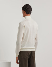 Seamless turtleneck in precious extra-fine merino wool, an expression of essential and sophisticated style. The seamless construction wraps the silhouette lightly and naturally, while the smooth finish and tag on the back add details of refined discretion. A distinctive and versatile piece designed for those who wish to approach every occasion with contemporary elegance and unparalleled comfort. FABRICS AND CRAFTSMANSHIP - Long sleeved turtleneck - Ribbed neckline, hem and cuffs - Plain knit - 18 gauge - 100% wool - Made in Italy CARE Hand wash max 40° Do not bleach Normal steam or dry iron on low (110°) Gentle dry clean with perchlorethylene Dry flat FIT The model is wearing a size 48 The model measures: Height: 186 cm (73.2 in) Chest: 81 cm (31.9 in) Waist: 70 cm (27.6 in) Hips: 82 cm (32.3 in)