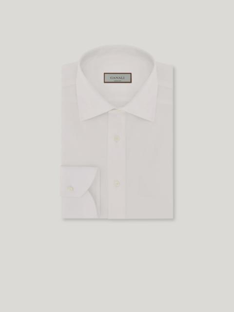 Canali Nuvola pure cotton formal shirt with elegant micro-checks and regular fit, providing comfort and freedom of movement. The semi-spread collar and clean design without a placket express essential and refined elegance. A versatile garment with attention to detail, designed for the man who seeks a contemporary, flawless style for every occasion. FABRICS AND CRAFTSMANSHIP - Formal shirt - Semi-spread collar - Collar height 4.2 cm - Removable ribs - Smooth back with no pleats - Smooth front with no placket - Semi-rounded cuff - 100% Cotton - Made in Italy CARE Machine wash max 30° Do not bleach Normal steam or dry iron on low (110°) Do not dry clean Do not tumble dry FIT Regular fit The model is wearing a size 50 The model measures: Height: 185 cm (72.8 in) Chest: 100 cm (39.4 in) Waist: 79 cm (31.1 in) Hips: 95 cm (37.4 in)