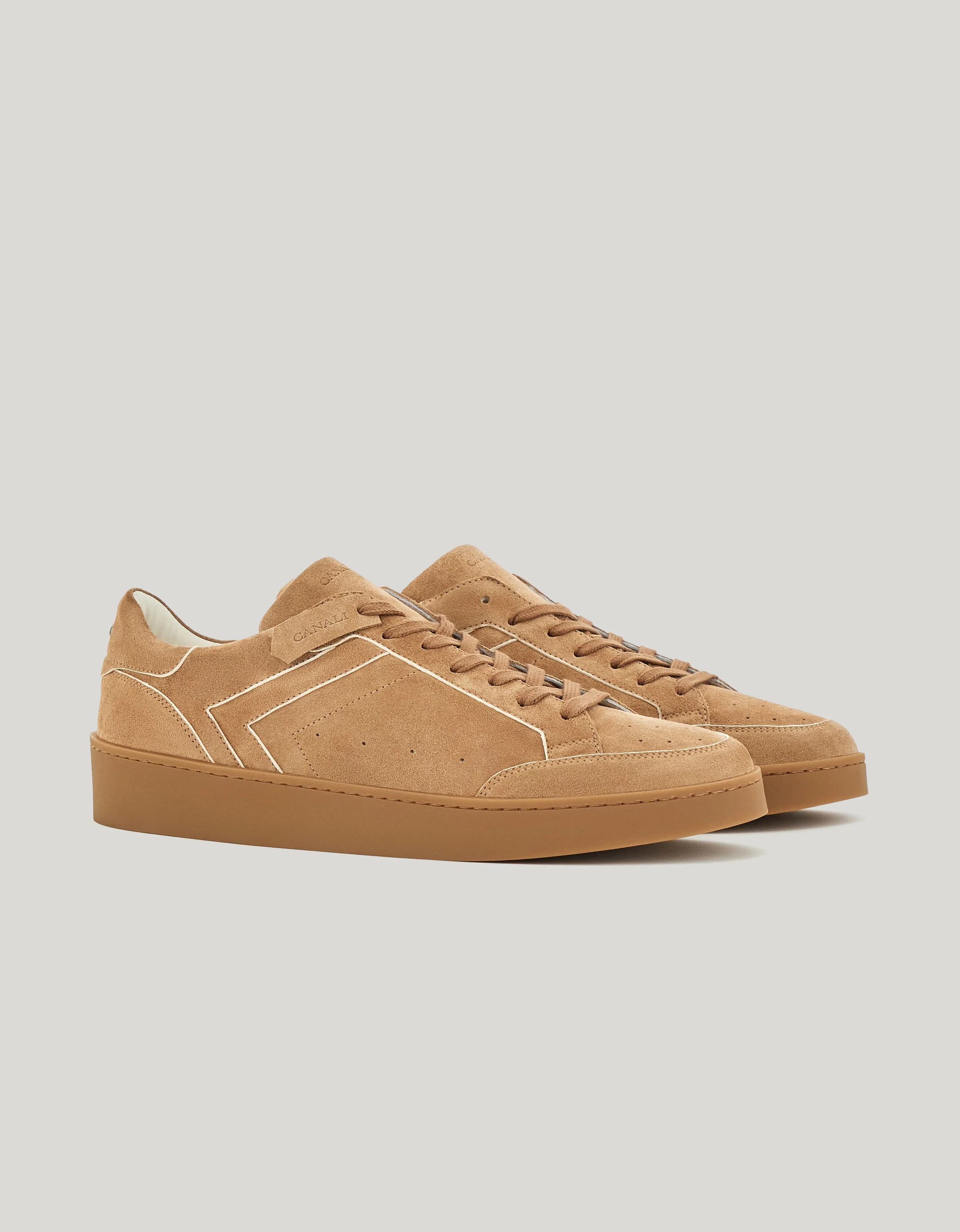 CANALI NUVOLA HAZELNUT SUEDE SNEAKERS WITH IVORY PIPING