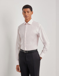 Regular fit cotton poplin shirt with refined elegance, an ideal choice for those seeking uncompromising style. The fine fabric ensures durability and a comfortable feel against the skin, while the fit and collar outline a sophisticated, contemporary silhouette. Perfect for any occasion, this shirt embodies the ideal balance between functionality and curated aesthetics, enriching the wardrobe with a distinctive and versatile piece. FABRICS AND CRAFTSMANSHIP - Formal shirt - Semi-spread collar - Collar height 4.2 cm - Removable collar stiffeners - Plain back with no wrinkles - Plain front with no placket - Semi-rounded cuff - 100% Cotton - Made in Italy CARE Machine wash max 30° - delicate cycle Do not bleach Normal steam or dry iron on low (110°) Gentle dry clean with perchlorethylene Do not tumble dry FIT Regular fit The model is wearing a size 48 The model measures: Height: 186 cm (73.2 in) Chest: 81 cm (31.9 in) Waist: 70 cm (27.6 in) Hips: 82 cm (32.3 in)