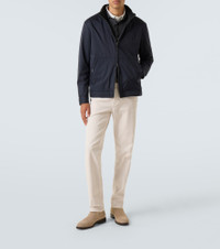 Crafted in Italy, the Canali Nuvola blouson from Canali boasts a reversible design with a two-way zipped front. This piece is finished with buttoned pockets and elasticated cuffs and hem. Product Details - Material: 100% polyester - Care instructions: dry clean - Made in Italy - Designer color name: 302 - Item color: blue - Lining: 100% polyurethane - Details: 100% goat leather - Cuff: buttoned - Closure: two-way zipped front - Pockets: buttoned pockets, internal pockets - Drawstring at the hem for adjustable fit - Contains non-textile parts of animal origin - Item number: P01057157 Size & Fit - True to size - Straight fit - Adjustable hem - Non-stretchy fabric - Height of model is 188cm-74" and wears a size IT 50