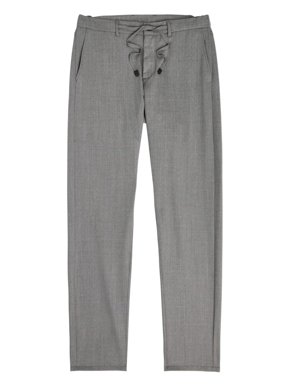 drawstring tapered trousers Highlights - Light grey - Side pockets - Drawstring waist - Button fly fastening - Tapered leg Made in Italy Composition Wool 100% Washing instructions Dry Clean Only