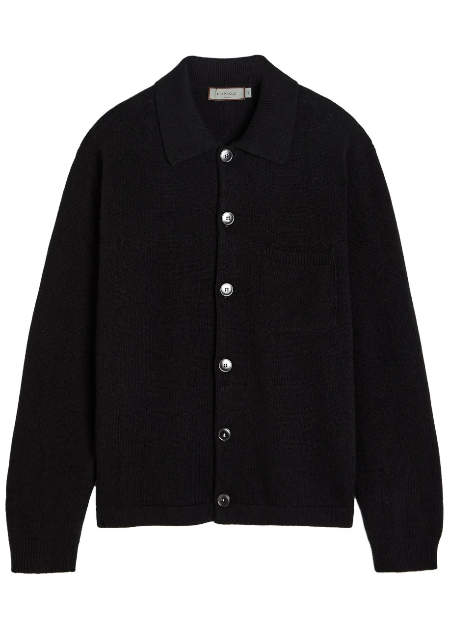 Info & Care Canali wool and cashmere-blend overshirt Keyhole at button-fastening cuffs, chest patch pocket, designer plaque at back neck, ribbed trims Button fastenings through front 70% wool, 30% cashmere Hand wash Size & Fit Length shoulder to hem: 26 inches/ 66cm Midweight Regular fit Model is 6'1"/ 185cm, chest size 36 inches and wears a size;IT48