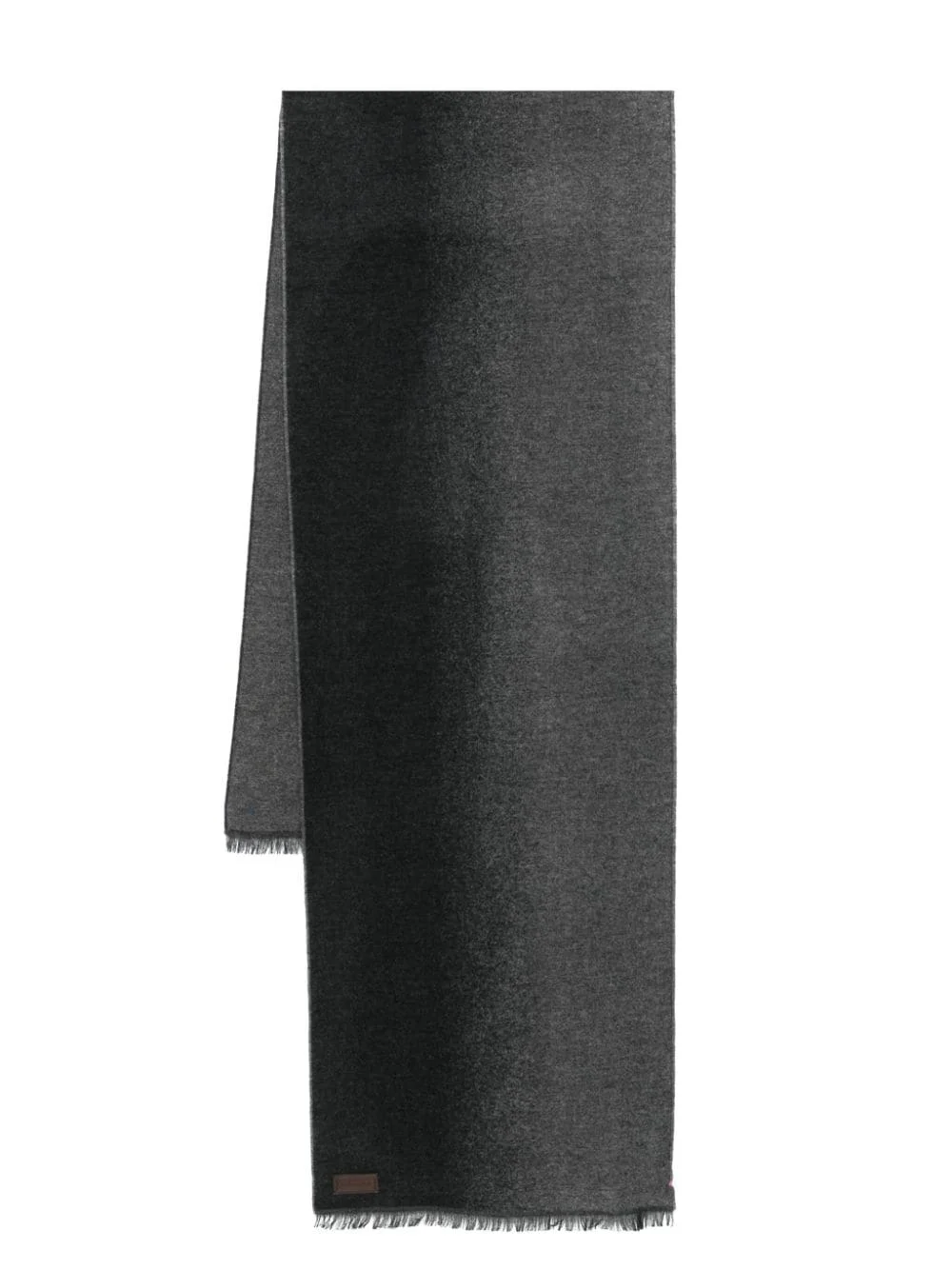 cashmere scarf Highlights - Dark grey - Cashmere - Knitted construction - Gradient effect - Logo patch to the front - Frayed edge - Rectangle shape Made in Italy Composition Cashmere 100% SIZE & FIT Measurement LENGTH 70.86 in(180 cm) WIDTH 14.96 in(38 cm) Washing instructions Dry Clean Only
