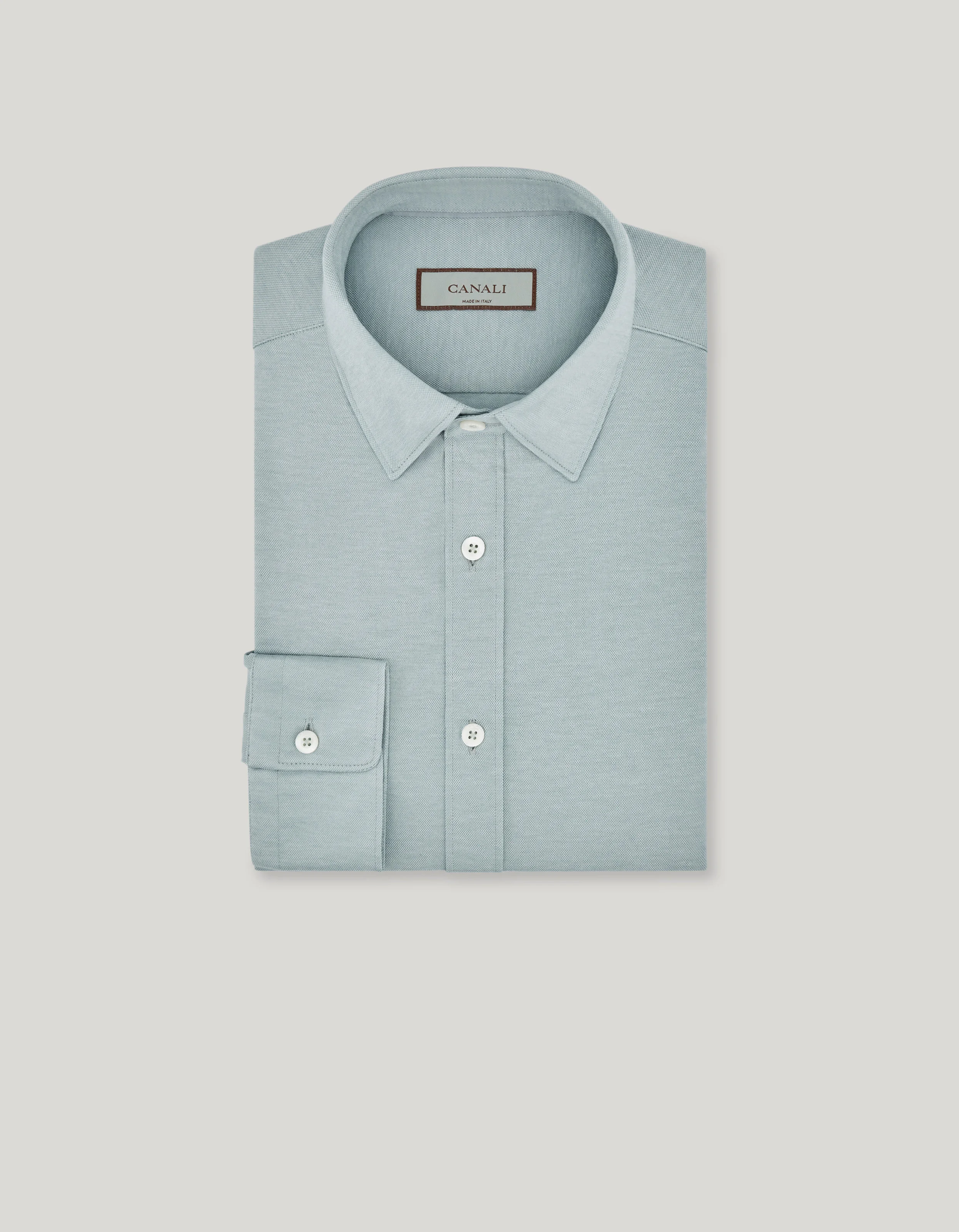 Casual jersey shirt with breezy elegance, a perfect balance between comfort and curated style. With a regular fit that enhances the figure without constriction and a refined collar, it is perfectly suited to a variety of occasions. An essential piece that cannot be missed in a man's wardrobe, ideal for an impeccable and contemporary look. FABRICS AND CRAFTSMANSHIP - Casual shirt - Narrow pointed collar - Collar height 4 cm - Front with placket - 50% Cotton 50% Lyocell - Jersey - Made in Italy CARE Machine wash max 30° - delicate cycle Do not bleach Normal steam or dry iron on low (110°) Gentle dry clean with perchlorethylene Dry flat FIT Regular fit The model is wearing a size 48 The model measures: Height: 192 cm (75.6 in) Chest: 93 cm (36.6 in) Waist: 67 cm (26.4 in) Hips: 88 cm (34.7 in)