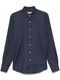 chambray shirt Highlights - Midnight blue - Front button fastening - Buttoned cuffs - Classic collar - Long sleeves Made in Italy Composition Cotton 98%, Elastane 2% SIZE & FIT FittingInformation Designed for a regular fit, allowing for a comfortably loose fit throughout the body Made from a midweight non-stretch fabric