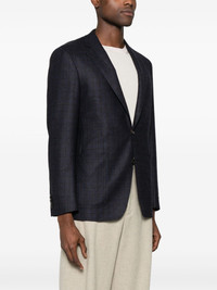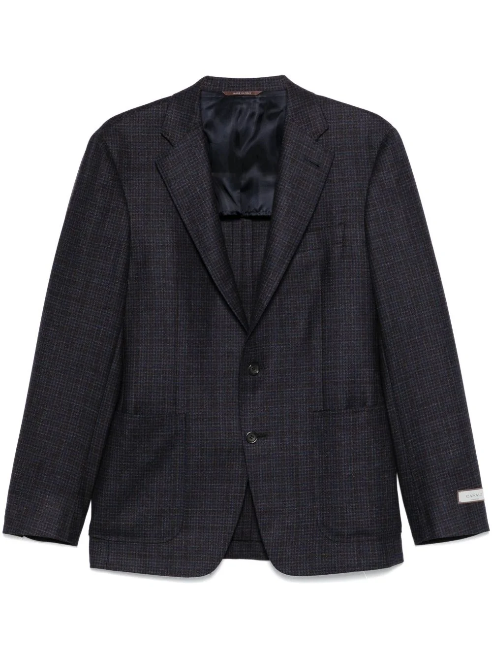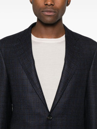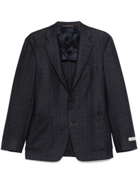 check-pattern blazer Highlights - Navy blue - Front button fastening - Jetted chest pocket - Two front patch pockets - Buttoned cuffs Made in Italy Composition Outer: Wool 100% Lining: Cupro 100% SIZE & FIT Model measurements Height 6 ft 2 in(1.88 m) Bust/Chest 36.61 in(93 cm) Hips 35.82 in(91 cm) Waist 27.95 in(71 cm) FittingInformation Designed for a slim fit, offering a comfortable fit that sits just away from the body The vented hem offers movement at the rear Made from a midweight non-stretch fabric, this piece offers minimal elasticity when worn