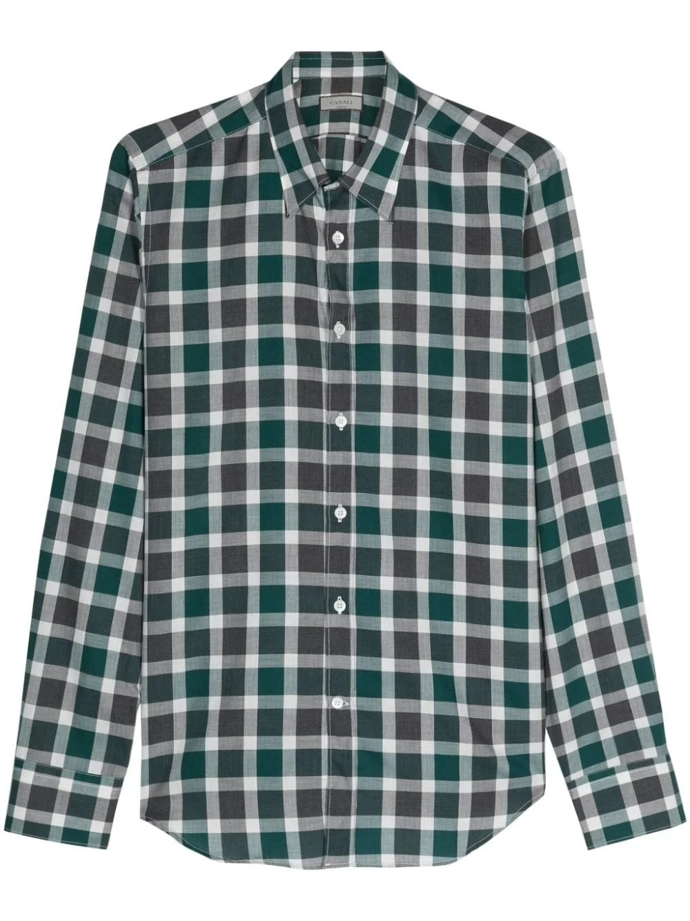 check-pattern cotton shirt Highlights - Green/grey/white - Cotton - Check pattern - Classic collar - Long sleeves with buttoned cuffs - Curved hem - Front button fastening Made in Italy Composition Cotton 100%