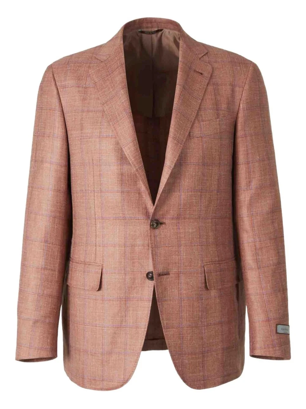 checked blazer Highlights - Sesame beige - Front button fastening - Chest welt pocket - Two side flap pockets - Buttoned-cuff sleeves Made in Italy Composition Silk 52%, Cashmere 48%