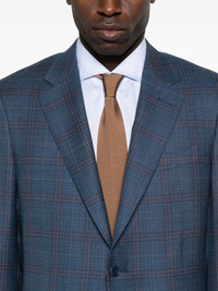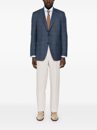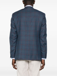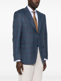 checked blazer Highlights - Navy blue - Front button fastening - Chest welt pocket - Two side flap pockets - Buttoned-cuff sleeves Made in Italy Composition Outer: Wool 100% Lining: Cupro 100% SIZE & FIT Model measurements Height 6 ft 0 in(1.84 m) Bust/Chest 35.82 in(91 cm) Hips 37 in(94 cm) Waist 28.34 in(72 cm) FittingInformation Designed for a slim fit, offering a comfortable fit that sits just away from the body The internal shoulder pads offer a structured shape Made from a midweight non-stretch fabric