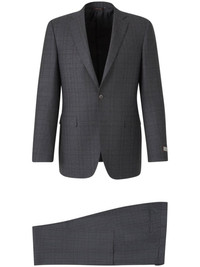 checked two-piece suit Highlights - Dark grey - Wool - Check pattern - Set of two - Jacket: - Front button fastening - Notched lapels - Long sleeves - Chest welt pocket - Logo patch at the sleeve - Two front flap pockets - Straight hem - Trousers: - Concealed fly and button fastening - Belt loops - Two side slit pockets - Two rear button-fastening pockets - Slim cut Made in Italy Composition Lining: Cupro 100% Outer: Wool 100% Washing instructions Read Manufacturer Guidelines