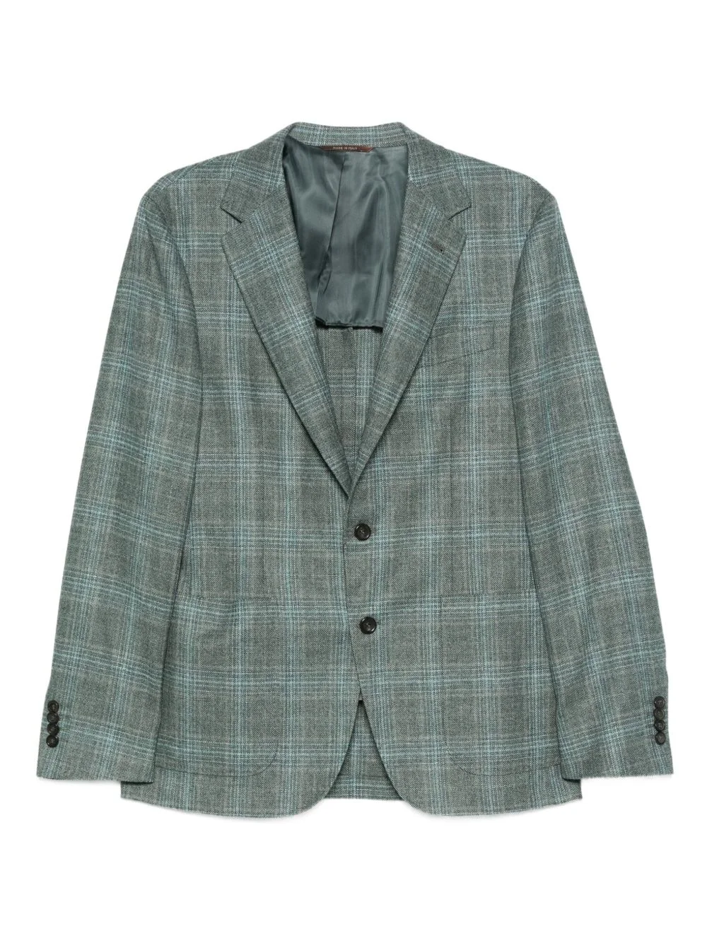 checked wool blazer Highlights - Blue and grey - Checked pattern - Two-button fastening - Notched lapels - Patch pockets - Long sleeves Made in Italy Composition Outer: Wool 100% Lining: Cupro 100% SIZE & FIT Model measurements Height 6 ft 2 in(1.88 m) Bust/Chest 37.4 in(95 cm) Hips 38.58 in(98 cm) Waist 31.1 in(79 cm) Washing instructions Dry Clean Only