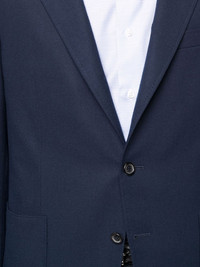 classic tailored blazer blue cashmere-blend notched collar long sleeves front button fastening two side pouch pockets chest welt pocket Made in Italy Composition Outer: Cashmere 96%, Elastane 4% Lining: Polyester 100% SIZE & FIT Model measurements Height 6 ft 2 in(1.87 m) Bust/Chest 36.41 in(92.5 cm) Hips 37 in(94 cm) Waist 29.52 in(75 cm) FittingInformation This piece fits true to size. We recommend you get your regular size Cut for a slim fit Made with a mid-weight fabric Washing instructions Dry Clean Only