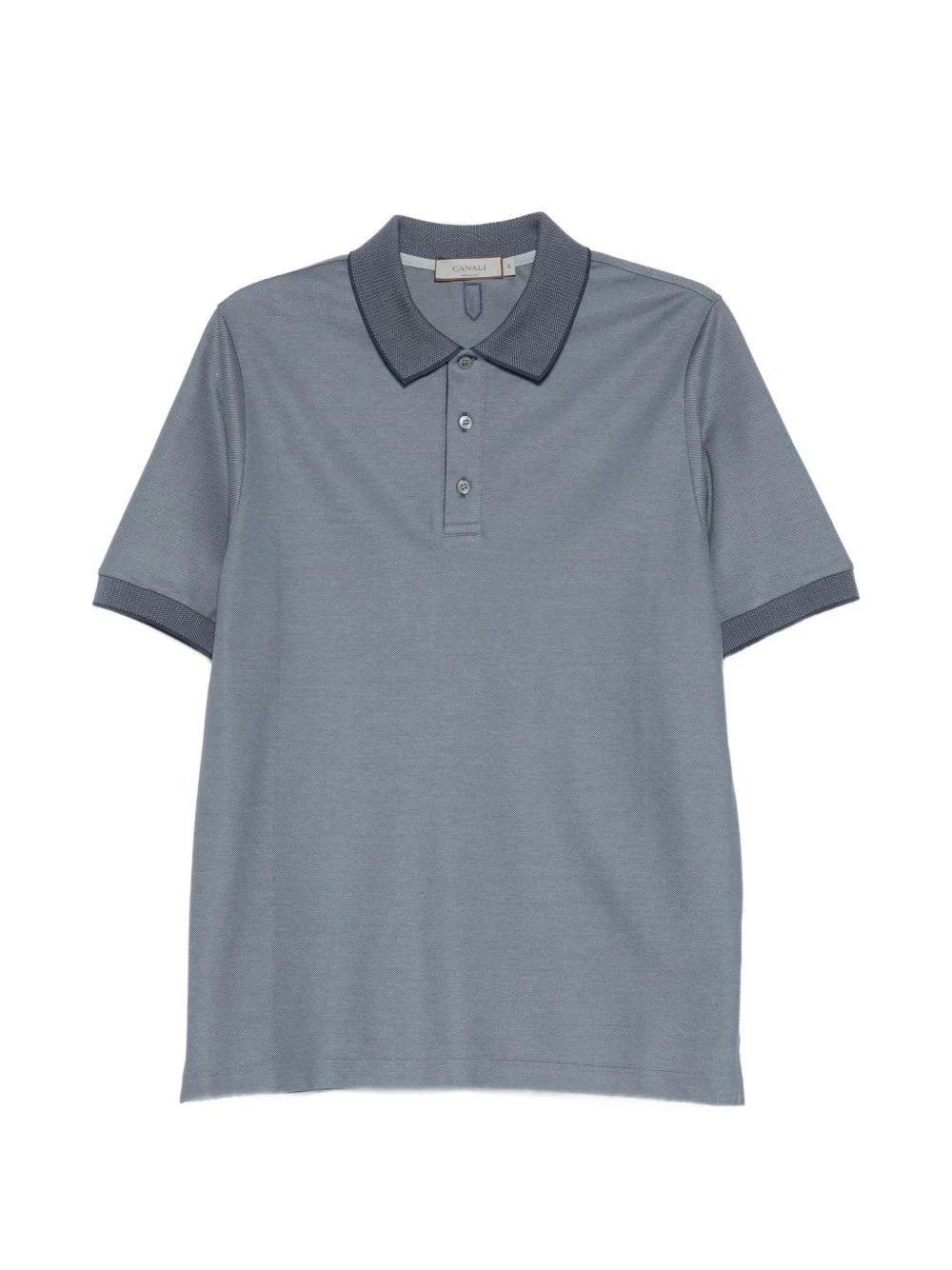 contrast-trim polo shirt Highlights - Stone blue - Contrast collar - Short sleeves - Front button placket - Straight hem Made in Italy Composition Cotton 100% Washing instructions Machine Wash