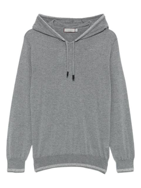 contrasting-trim hoodie Highlights - Light grey - Drawstring hood - Ribbed cuffs - Long sleeves Made in Italy Composition Merino 97%, Silk 1%, Polyamide 1%, Viscose 1% SIZE & FIT Model measurements Height 6 ft 1 in(1.85 m) Bust/Chest 38.58 in(98 cm) Hips 37 in(94 cm) Waist 30.31 in(77 cm) Washing instructions Hand Wash