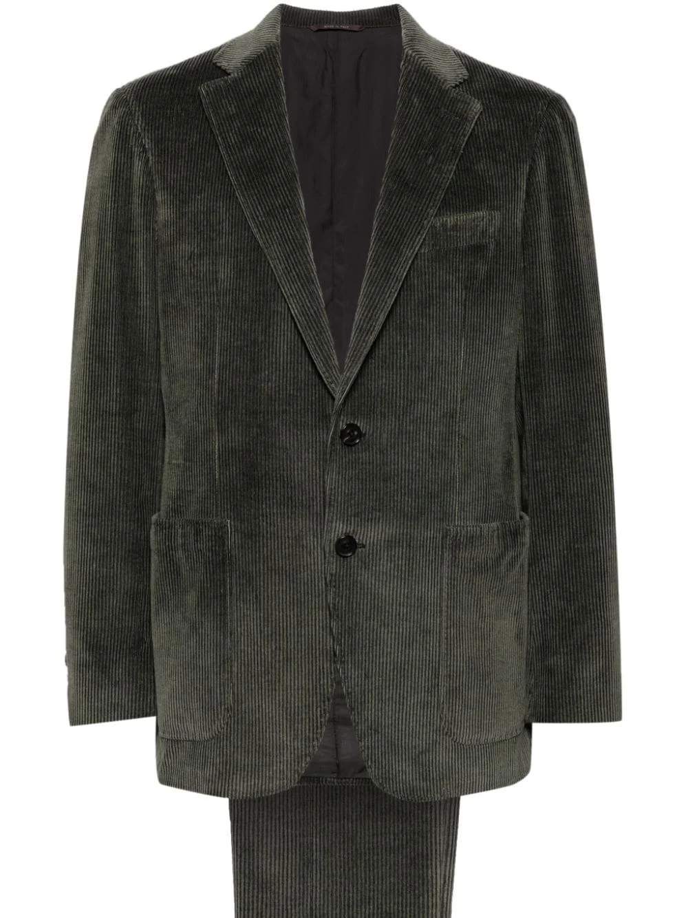 corduroy single-breasted suit Highlights - Forest green - Cotton-cashmere blend - Corduroy Made in Italy Composition Cotton 91%, Cashmere 8%, Elastane 1% SIZE & FIT Model measurements Height 6 ft 3 in(1.9 m) Bust/Chest 35.03 in(89 cm) Hips 36.61 in(93 cm) Waist 29.13 in(74 cm) FittingInformation Tailored for a slim fit, offering a comfortable fit that sits just away from the body The internal shoulder pads offer a structured shape Made from a midweight stretch fabric, this piece offers elasticity and flexibility when worn This piece fits true to size – take your usual size