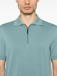 cotton polo shirt Highlights - Ocean blue - Half front zip fastening - Short sleeves - Ribbed cuffs and hem Made in Italy Composition Cotton 100% SIZE & FIT Model measurements Height 6 ft 1 in(1.86 m) Bust/Chest 37.4 in(95 cm) Hips 36.22 in(92 cm) Waist 29.52 in(75 cm) FittingInformation Designed for a relaxed fit, this polo shirt offers comfort and movement The ribbed hem offers a close, comfortable fit Made with a midweight knit, this piece offers some stretch
