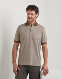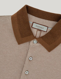 This short sleeved polo shirt, made of high-quality cotton, features a collar stand and textured pique trim. The design is enhanced by a sweatband that increases comfort and subtle embroidery that enhances its timeless style. A perfect balance between functionality and sophistication, ideal for the modern man seeking a versatile piece with impeccable style. FABRICS AND CRAFTSMANSHIP - Short sleeved 3 button polo shirt - Textured smocking neck sail - Ribbed sleeve edges - Side slits - 100% cotton - Made in Italy CARE Machine wash max 30° Do not bleach Normal steam or dry iron on low (110°) Dry clean with perchlorethylene Do not tumble dry FIT The model is wearing a size 50 The model measures: Height: 185 cm (72.8 in) Chest: 100 cm (39.4 in) Waist: 79 cm (31.1 in) Hips: 95 cm (37.4 in)