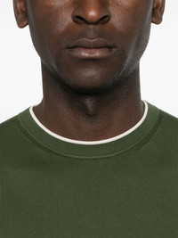 cotton T-shirt Highlights - Olive green - Ribbed cuffs and hem - Crew neck - Short sleeves Made in Italy Composition Cotton 100% SIZE & FIT Model measurements Height 6 ft 2 in(1.87 m) Bust/Chest 36.41 in(92.5 cm) Hips 37 in(94 cm) Waist 29.52 in(75 cm) FittingInformation Designed for a slim fit, offering a comfortable fit that sits just away from the body Made with a lightweight knit, this piece offers some stretch Washing instructions Hand Wash
