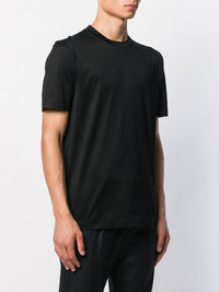 slim fit T-shirt Black cotton slim fit T-shirt from Canali featuring a round neck, short sleeves and a straight hem. Made in Italy Composition Cotton 100% SIZE & FIT Model measurements Height 6 ft 1 in(1.85 m) Bust/Chest 35.82 in(91 cm) Hips 37.79 in(96 cm) Waist 29.13 in(74 cm) Measurement CHEST 44.88 in(114 cm) Shoulder Width 19.29 in(49 cm) FittingInformation This piece fits true to size. We recommend you get your regular size Cut for a relaxed fit Made with a mid-weight fabric Washing instructions Machine Wash