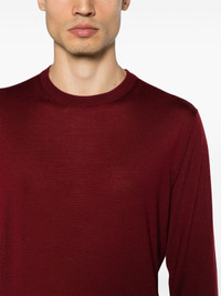 crew-neck fine-knit jumper Highlights - Burgundy - Wool-cashmere blend - Fine knit - Crew neck - Drop shoulder - Long sleeves - Ribbed cuffs and hem - Straight hem Made in Italy Composition Wool 35%, Cashmere 35%, Silk 30% SIZE & FIT Model measurements Height 6 ft 1 in(1.86 m) Bust/Chest 37.4 in(95 cm) Hips 36.22 in(92 cm) Waist 29.52 in(75 cm) FittingInformation Designed for a regular fit, offering a comfortable loose fit throughout the body The ribbed hem offers a close, comfortable fit Made with a midweight knit, this piece offers some stretch This piece fits true to size – take your usual size Washing instructions Hand Wash