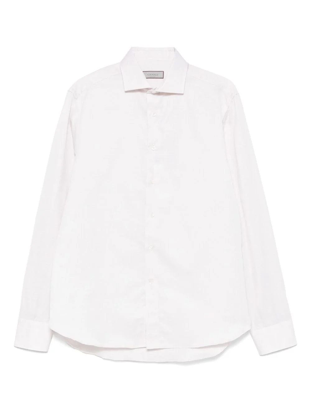 cutaway-collar shirt Highlights - Light beige - Front button fastening - Buttoned-cuff sleeves - Dart detailing - Curved hem Made in Italy Composition Cotton 67%, Linen/Flax 33% Washing instructions Machine Wash