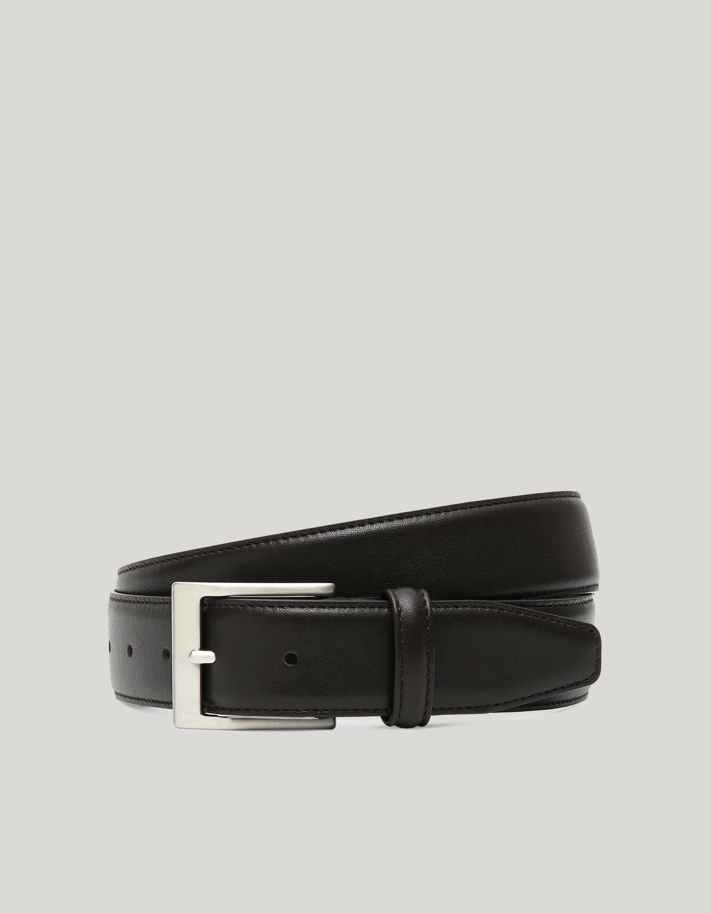 This classic belt is a must for every men's wardrobe. This accessory comes in an elegant dark brown calfskin leather and features a rectangular buckle for a sophisticated and stylish look. Pair with matching dark brown leather shoes to complete your ensemble. FABRICS AND CRAFTSMANSHIP - Semi-blunt buckle. 3.5cm/1.4" - Made in Italy - Calfskin