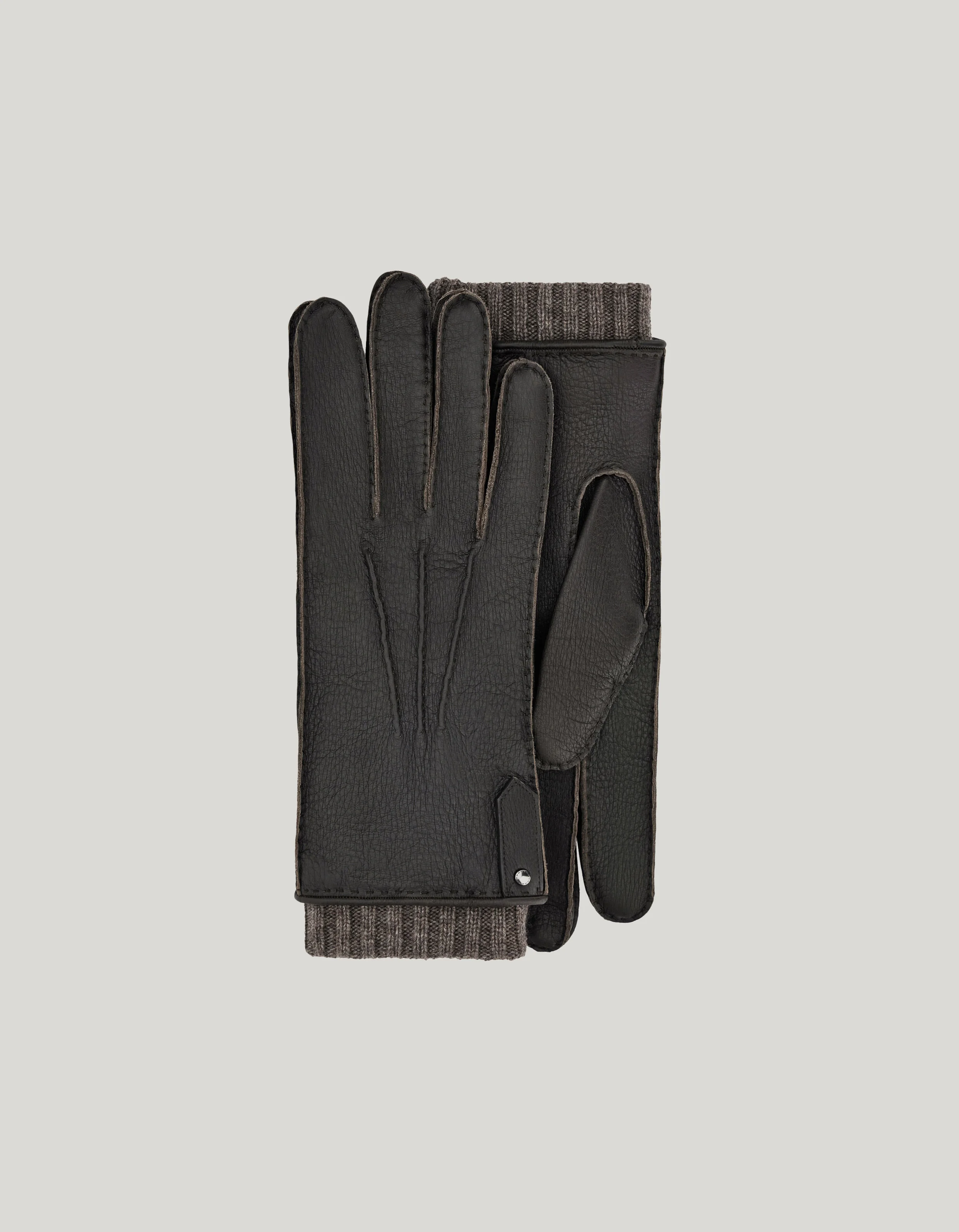 DARK BROWN DEERSKIN GLOVES WITH RIVET AND CASHMERE LINING