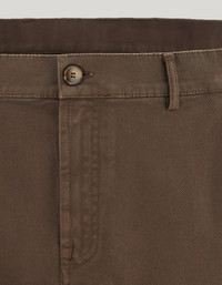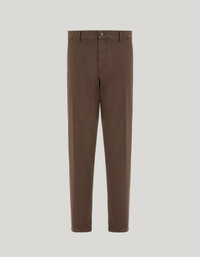 The stretch cotton twill chinos with a tapered fit in this traditional hue are an expression of understated and versatile modernity. The garment-dyed finish lends chromatic depth to the fabric, while the contemporary silhouette and ergonomic construction ensure freedom of movement and impeccable fit. Perfect for interpreting a polished yet relaxed style, ideal for both formal occasions and more informal settings. FABRICS AND CRAFTSMANSHIP - Flat-front chinos - Tapered fit - Central fastening with visible button - Double welt back pockets with exposed button - Hem 19 cm - Garment-dyed comfort twill - 98% cotton 2% Elastane - Made in Italy CARE Machine wash max 30° - delicate cycle Do not bleach Normal steam or dry iron on low (110°) Gentle dry clean with perchlorethylene Do not tumble dry FIT Tapered fit The model is wearing a size 48 The model measures: Height: 186 cm (73.2 in) Chest: 81 cm (31.9 in) Waist: 70 cm (27.6 in) Hips: 82 cm (32.3 in)