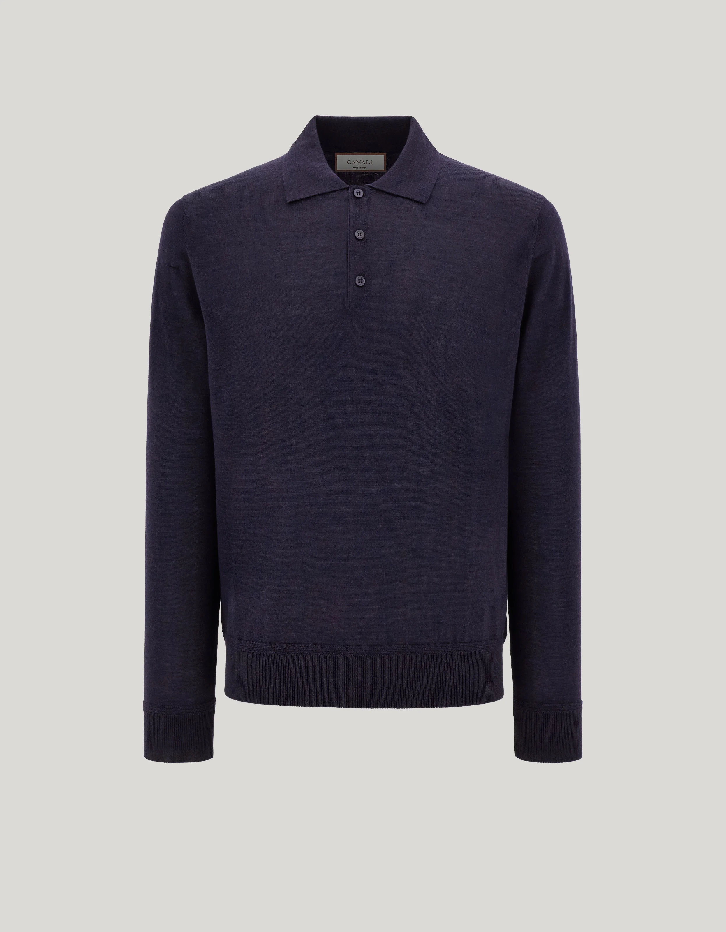 Long sleeved polo shirt in fine wool-silk-cashmere blend, designed for the man who wants to combine versatility and sophistication in every occasion. The plain knit workmanship, enriched by structured details on the bottom and sleeves, enhances the quality of the materials and gives a refined softness. An essential piece for the contemporary wardrobe, capable of adding a note of understated elegance to both formal and more casual outfits. FABRICS AND CRAFTSMANSHIP - Long sleeved button-down polo shirt - Ribbed neckline, hem and cuffs - Plain knit - 18 gauge - 70% wool 20% silk 10% cashmere - Made in Italy CARE Hand wash max 40° Do not bleach Normal steam or dry iron on low (110°) Gentle dry clean with perchlorethylene Dry flat FIT The model is wearing a size 50 The model measures: Height: 185 cm (72.8 in) Chest: 100 cm (39.4 in) Waist: 79 cm (31.1 in) Hips: 95 cm (37.4 in)