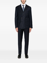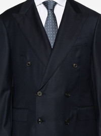 double-breasted suit Highlights - Dark blue - Double-breasted - Peak lapels - Side flap pockets - Straight trousers - Flat front trousers Made in Italy Composition Lining: Cupro 100% Outer: Wool 100% SIZE & FIT Model measurements Height 6 ft 2 in(1.88 m) Bust/Chest 37.4 in(95 cm) Hips 38.58 in(98 cm) Waist 31.1 in(79 cm) Washing instructions Dry Clean Only