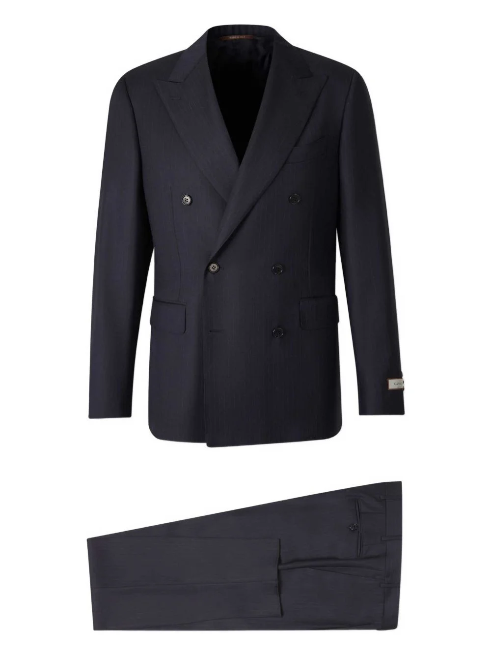 pinstripe double-breasted suit Highlights - Dark blue - Pinstripe pattern - Double-breasted closure - Notched lapels - Welt pockets Made in Italy Composition Wool 100% Washing instructions Read Manufacturer Guidelines