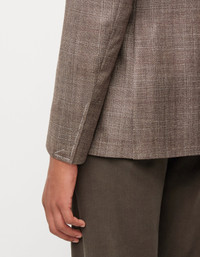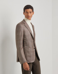 Made from a fine blend of silk and cashmere, this Kei jacket embodies the epitome of casual elegance. With a single-breasted line and two buttons, it harmoniously fits the body thanks to its soft structure. Fully unlined and with attention to detail, it creates a distinctive and sophisticated look while maintaining exceptional comfort at all times. The perfect union of style and practicality, enhancing the figure with Made in Italy tailoring mastery. FABRICS AND CRAFTSMANSHIP - Unlined single-breasted two-button jacket - Patch pockets and slit breast pocket - Set-in shirt sleeves - Inside pockets with fabric piping and lined triangular pocket square - Jacket length 75 cm in size 50 - This garment does not come with buttons or buttonholes at the end of the sleeves, allowing the customer to customize the length of the sleeves - 53% silk 47% cashmere - Made in Italy CARE Do not wash with water Do not bleach Normal steam or dry iron on low (150°) Dry clean with perchlorethylene Do not tumble dry FIT Modern Fit - drop 7 The jacket is soft and de-constructed, with a contemporary fit on the shoulders, chest, and hips, while the waist is more enveloping, defining a slimmer silhouette. Set-in sleeves and ultra-light 1 mm high shoulder pad. The model is wearing a size 48 The model measures: Height: 186 cm (73.2 in) Chest: 81 cm (31.9 in) Waist: 70 cm (27.6 in) Hips: 82 cm (32.3 in)