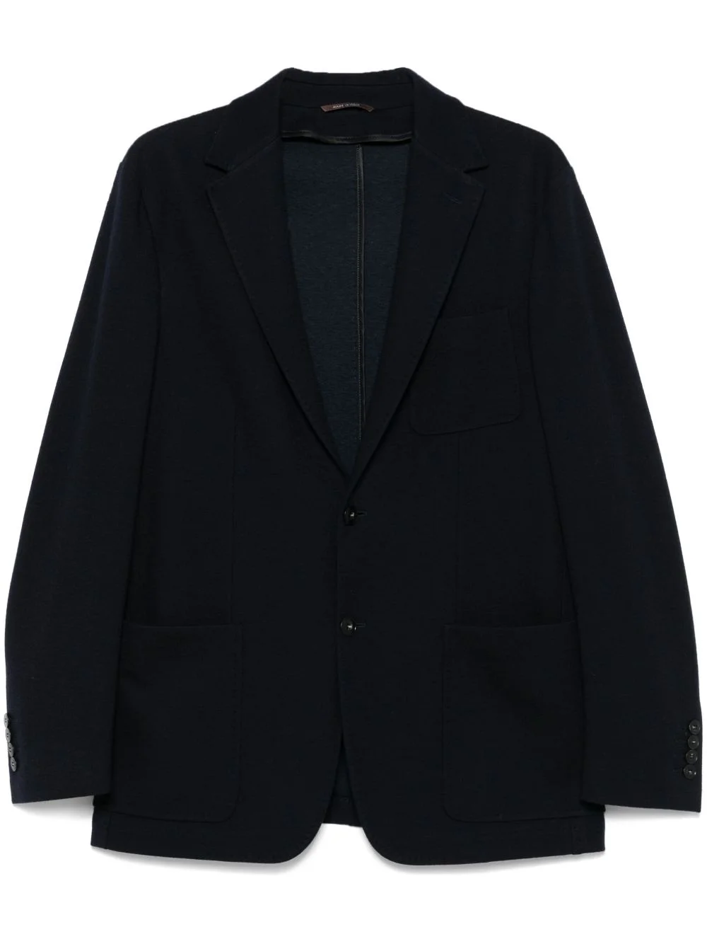 felted blazer Highlights - Navy blue - Front button fastening - Three front patch pockets - Buttoned cuffs - English rear vents Made in Italy Composition Outer: Wool 48%, Cotton 44%, Polyamide 8% Lining: Acetate 65%, Polyester 35%